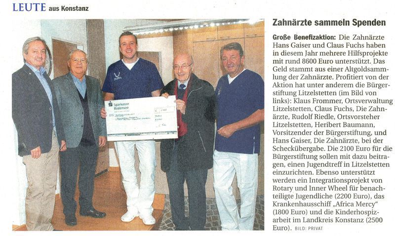 Presse Hier stellen wir Ihnen Presseveröffentlichungen über die Zahnarztpraxis Dres. Fuchs und Kollegen zur Verfügung – wir wünschen viel Spaß beim Lesen!
